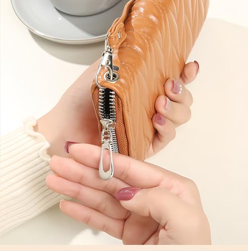 Origin: ImportedLuxe Stitched Elegance: Crafted from supple vegan leather, this women's wallet showcases meticulous quilted detailing for lasting durability. Sleek slide-zippers ensure effortless access, while the optional detachable wrist strap adds versatile charmSmart Daily Organization: The credit card holder wallet for women is designed with 8 card slots, 2 receipt pockets, 3 bill compartments, and 1 secured zipper coin pouch. Slim 4.13L x 7.87H profile fits totes/clutchesAdvanced RFID Security: The RFID leather wallets for women are built with RFID-blocking material tested at 13.56MHz frequency, effectively shielding credit cards and passports from wireless skimming in crowded spacesHands-Free Carrying Solution: The zip-around wristlet wallets for women feature a detachable wristlet strap that securely anchors to your wrist during travel or shopping. The full-wrap zipper closure ensures complete contents protectionGift-Ready Wallet for Women: This ladies' wallet can be a present for those you hold dear. Whether it's an anniversary, birthday, Christmas, or any other significant occasion impeccable for everyday use. top-grade materials and excellent craftsmanship ensure long-lasting durability.