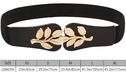Care instructions: Dry Cloth CleanOrigin: ImportedMATERIALS: This PU leather elasticized belt is crafted with a metal buckle and a highly elasticized elastic band, adorned with a soft faux leather materialSize: Our Elastic Waistband is 4 cm wide and available in 6 different lengths: XS: 25.5 inches/65 cm; S: 29.5 inches/75 cm; M: 33.4 inches/85 cm; L: 37.4 inches/95 cm; XL: 41.3 inches/105 cm; XXL: 45.2 inches/115 cm. Its stretchy nature makes it suitable for various waist sizes, fitting most women and girlsDESIGN: Our women's skinny belts showcase an interlocking metal buckle front closure, enabling quick fastening and unfastening. This feature not only helps to cinch the waist but also creates an appealing silhouetteFASHIONABLE: Featuring a chic gold leaf pattern, this women's PU leather elasticized belt is the perfect accessory to elevate any outfitMATCHING: Ideal for pairing with high-waisted jeans and dresses, this fashionable womenβs belt adds an elegant, cute, and chic touch to your ensemble Perfect for everyday use. excellent materials and excellent craftsmanship ensure long-lasting durability.