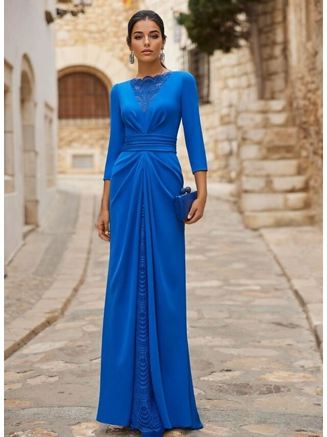 $149.99 - A-Line Evening Gown Elegant Dress Formal Wedding Guest Floor Length Long Sleeve Crew Neck Detachable Stretch Crepe with Ruched 2025. Shop for cheap Sheath Evening Dresses online? Buy at lightinthebox.com on sale today!
