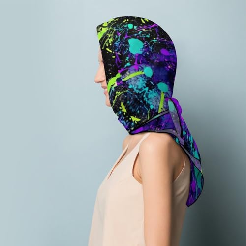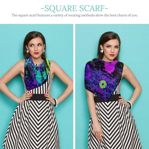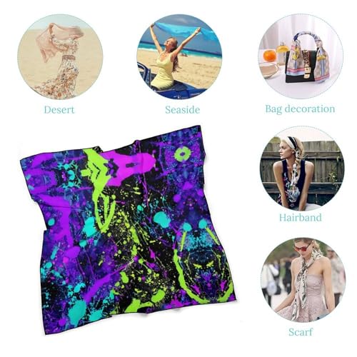 Glow in Dark Splatter Neon Silk Scarf Square Scarves 27" X 27" Neck Scarf Headscarf Shawl Wrap Bandana