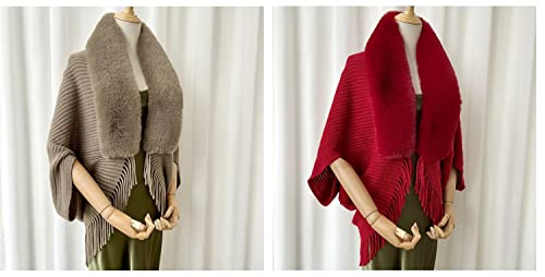 sought-after ! Ladies Knitted Loose Thickened Shawl Coat, Softies Fur Shawls and Wraps for Weddings Evening Dresses, Faux Fur Shawl Cape