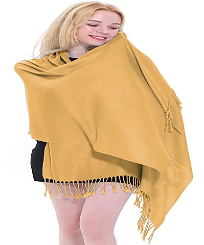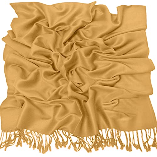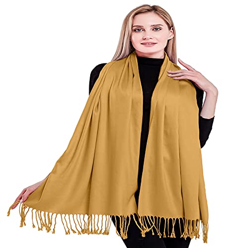 Why Choose CJ Apparel Light Gold Solid Color Tassels Design Nepalese Shawl Scarf Wrap Stole Throw Head Wrap Pashmina Hand Made in Nepal latest?
