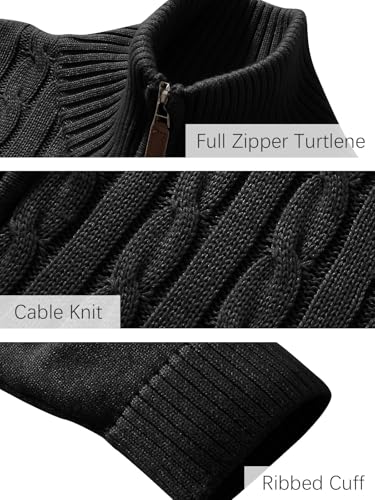 Fabric type: 55% Acrylic, 45% CottonCare instructions: Machine WashClosure type: ZipperNeck style: Turtle NeckMaterial: 55%Acrylic, 45%Cotton. Elastic soft and knit fabric, make you feel more warm and comfortable when you wearing this zip up knit sweater jacket.Design: Mens cardigan sweater design with stand collar, cable knitted fabric, ribbed collar, cuffs & hem, mock neck, zip front and classic fit create a current and sophisticated look.Features: Cable knit sweater men, full zip knitted cardigan sweater, stand collar zip sweater jacket, long sleeve sweatshirt cardigan, classic ribbed knit cardigans for men.Occassions: Mens zip up sweater suitable for outdoor activities and daily casual wear, such as work, party, golf, travel, sports, lounge, vacation, hiking etc. Easy to pair with shirts, trousers or jackets, great for spring, fall and winter days.Care: Please carefully refer to our Size Chart we provided before you purchase this mens zipper sweaters. Machine Wash, No Bleach, Lay Flat to Dry for longer lasting clothing. Perfect for everyday use. excellent materials and excellent craftsmanship ensure long-lasting durability.