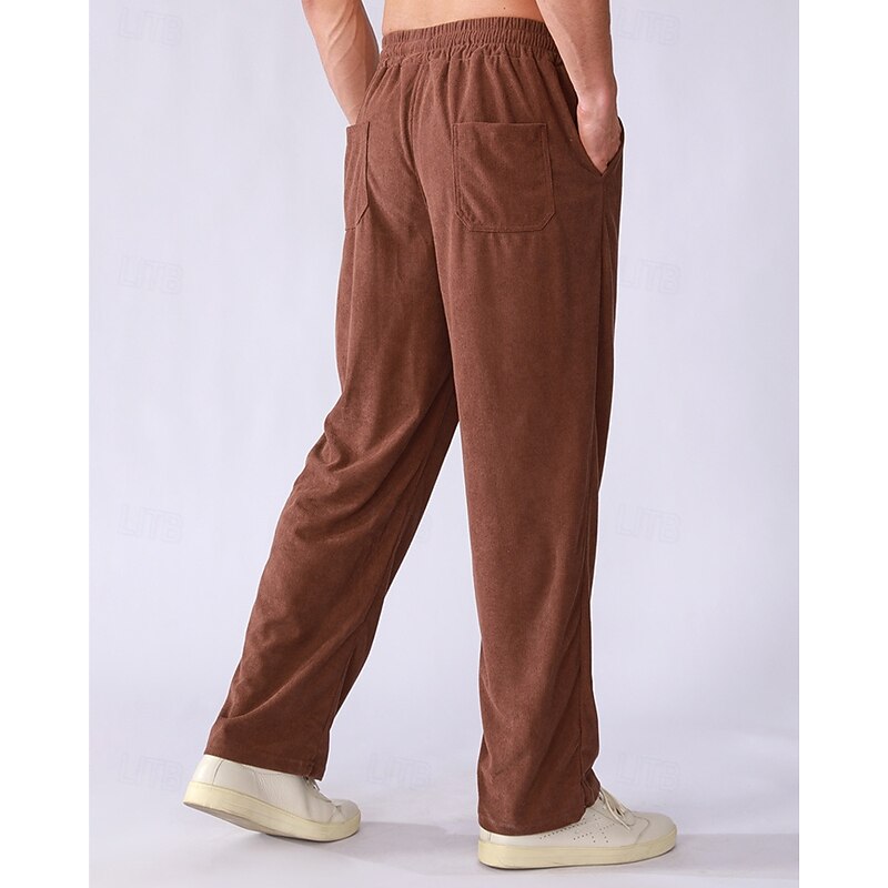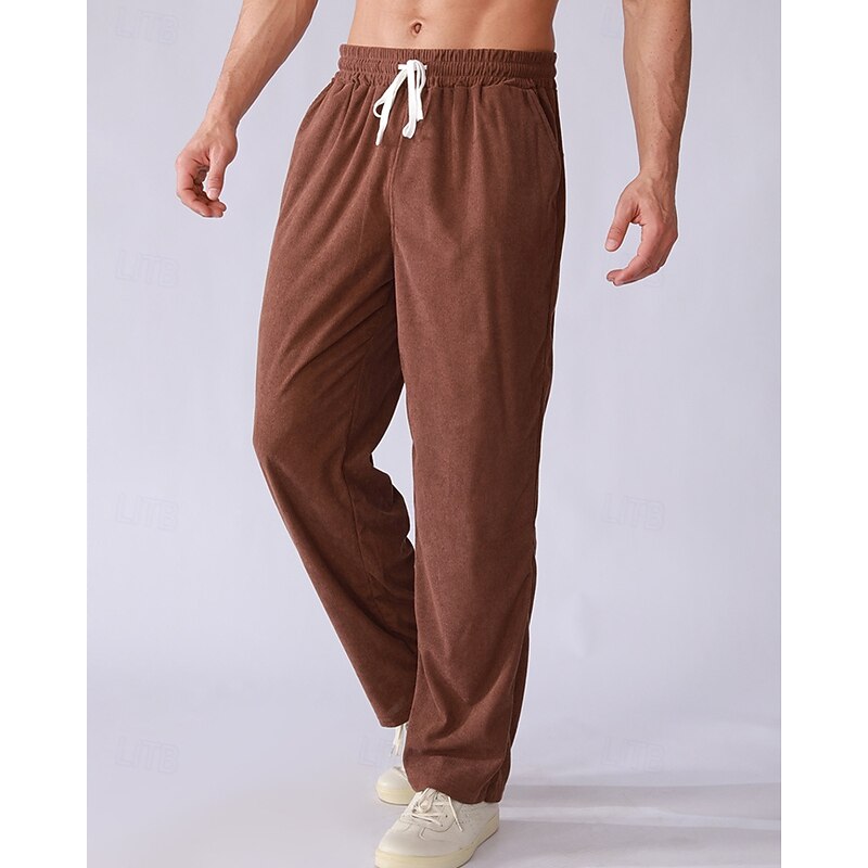Why Choose Men's Sweatpants Corduroy Pants Trousers Straight Leg Sweatpants Pocket Elastic Waist Drawstring Plain Comfort Sports Outdoor Daily Fashion Casual Black Brown Micro-elastic?
