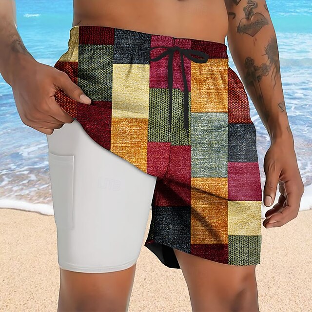 $21.99 - Men's Color Block Patchwork Lined Shorts 2 in 1 Board Shorts Swim Shorts Mid Waist Hawaiian Vacation Holiday Beach Wear Side Pockets With Compression Liner Elastic Drawstring Waist Designer Clothing 2025. Shop for cheap Geometric Print online? Buy at lightinthebox.com on sale today!