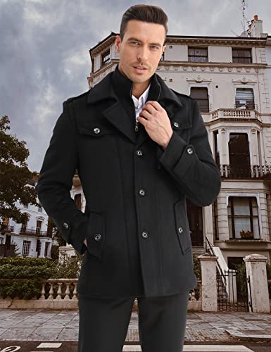 iCKER Mens Trench Coat Winter Wool Blend Jacket Overcoat Long Top Coat snug Pea Coat