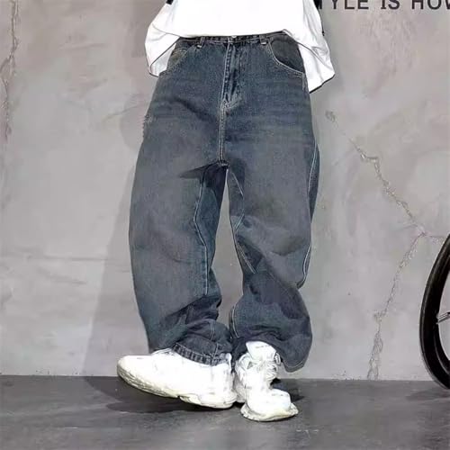 More information about Men’S Hip Hop Stacked Baggy Straight Leg Denim Pants Slim Fit Full Length Button Fly Distressed Streetwear Trousers