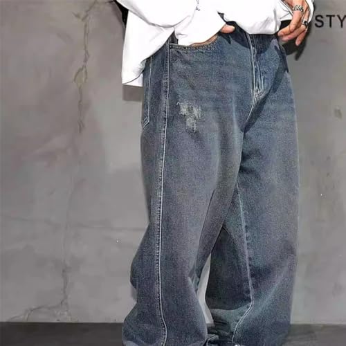 sought-after ! Men’S Hip Hop Stacked Baggy Straight Leg Denim Pants Slim Fit Full Length Button Fly Distressed Streetwear Trousers