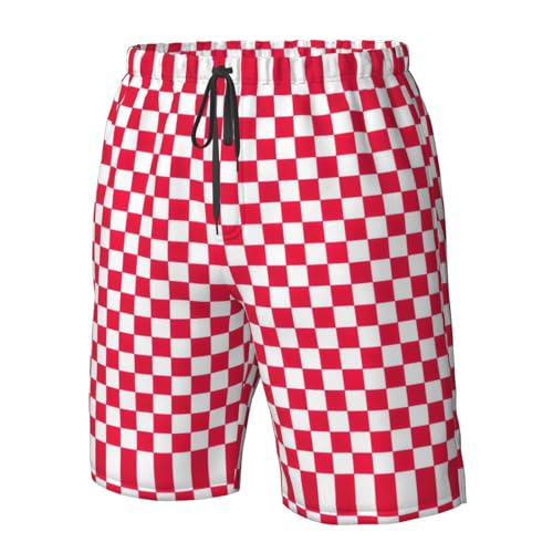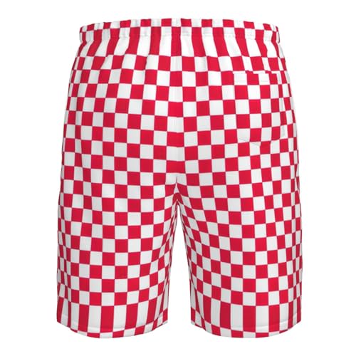 Red Checkered White Squares Print Men's Casual Beach Shorts speedy Dry Lightweight Drawstring Shorts with Pockets