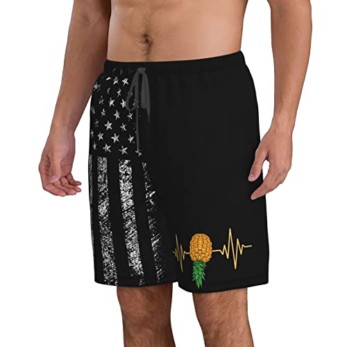 Why Choose ONVOWO Heartbeat Swinger Upside Down Pineapple Gift Men's Swim Trunks Mens Swim Shorts Boxer Brief Men Swimwear Bathing Suits White-L?