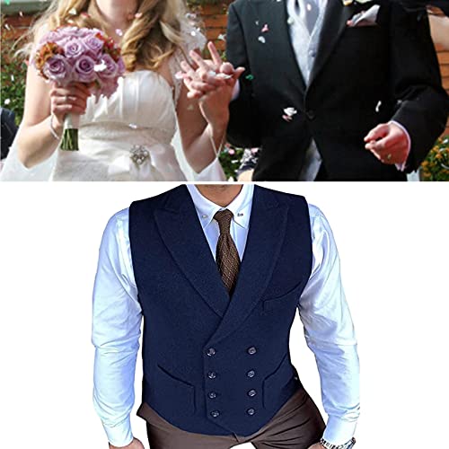 sought-after ! Men's Herringbone Tweed Waistcoat Vintage Lapel Double Breasted Suit Vest for Business Wedding (Color : Navy, Size : XX-Large)