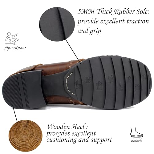 Motorcycle Boots Men CasuaL Riding Leather Motorcycle Combat Boot/Shoes Fashion Lace-up Chukka Boot Ankle Caramel Brown HF002-1