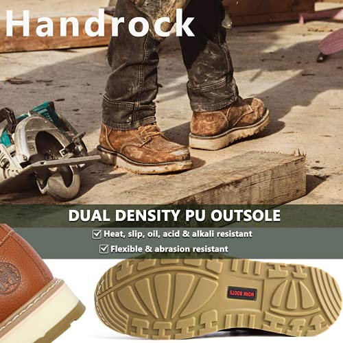 HANDROCK Men's sophisticated traditional 6" Soft Moc Toe Leather Work Boot With Non-Slip Wedge Outsole 84994