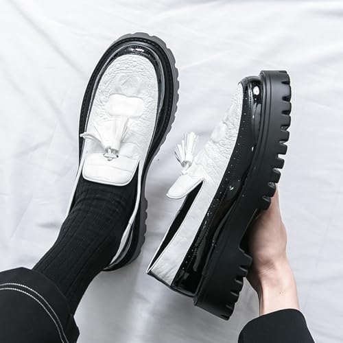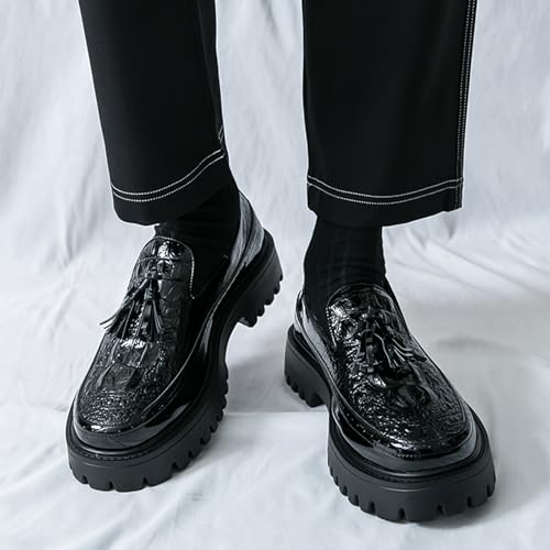 Men's Fashion Tassel Chunky Platform Penny Dress Loafers Luxury Round Toe Slip-On Non-Slip Lug Sole Business Formal Shoes for Daily Work and Casual