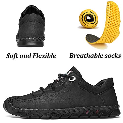 UPIShi Men's Casual Penny Loafers Breathable Leather Lace Up Handmade Outdoor Shoes