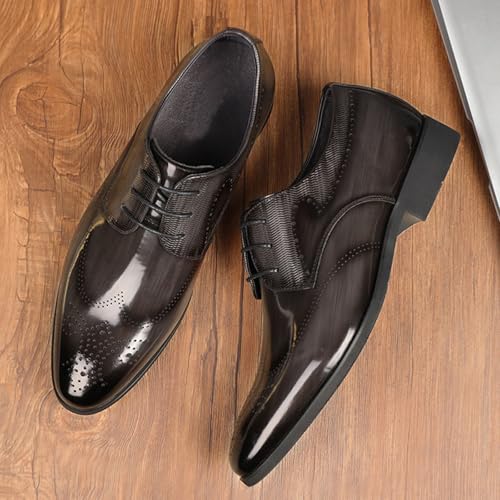 Sole material: RubberOuter material: Faux LeatherClosure type: Lace-UpWater resistance level: Not Water Resistant【High-quality Material】: Men's formal Oxford shoes are made of artificial leather, which is durable, soft and delicate, breathable, breathable and elastic insole and skin-friendly lining, fit the foot shape, provide cushioning and comfort, and ensure comfortable wearing.【Anti-slip Sole】: Men's formal shoes use rubber soles, the outsole is flexible, lightweight and wear-resistant, providing good cushioning, increasing shock absorption, relieving foot fatigue, and the high anti-slip sole has strong grip, providing all-day balance and stability, ensuring comfortable wearing and long-lasting use.【Classic Style】: The men's Oxford shoes are designed with wing tips and brogues, which make the shoes more fashionable, show the wearer's exclusive personality and taste, and easily enhance the overall style. The upper is polished with multiple polishing processes to give the upper a good gloss and touch. The classic lace-up design can better stabilize the feet, so that the shoes and feet can be perfectly integrated to ensure a firm fit.【Suitable Occasions】: This men's Oxford Derby shoe exudes a refined and elegant temperament and can be matched with most of your clothes. It is suitable for weddings, parties, graduation ceremonies, concerts, offices, business, special events and other occasions. They can make you stand out in various occasions and leave a deep impression.【Size Selection】: The shoe size chart is on the product page, please check the size chart to choose the right size. We always want to provide customers with better customer service and shopping experience. If you have any questions about our products, please feel free to contact us. Perfect for everyday use. finest materials and excellent craftsmanship ensure long-lasting durability.