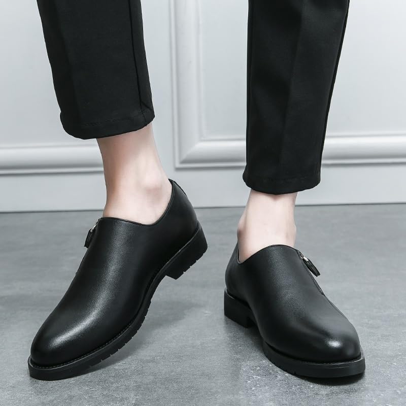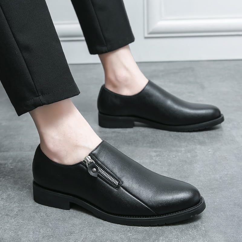 Formal Shoes for Men Slip On Round Toe PU Leather with Side Zipper Oxford Shoes Anti-Slip Rubber Sole Non Slip Casual
