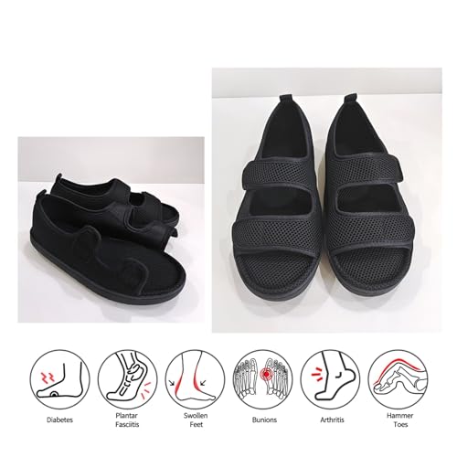 Men's Open Toe Diabetic Sandals, Men Summer Mesh Breathable Adjustable Orthopedic Diabetic Sandals, Lightweight Anti-Slip Indoor Outdoor Sole Edema Shoes, for Foot Heel Pain, Pain Relief
